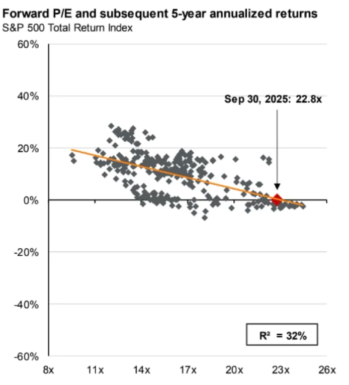 The relationship between the forward PE and 5-year annualized return is shown in the chart below.
