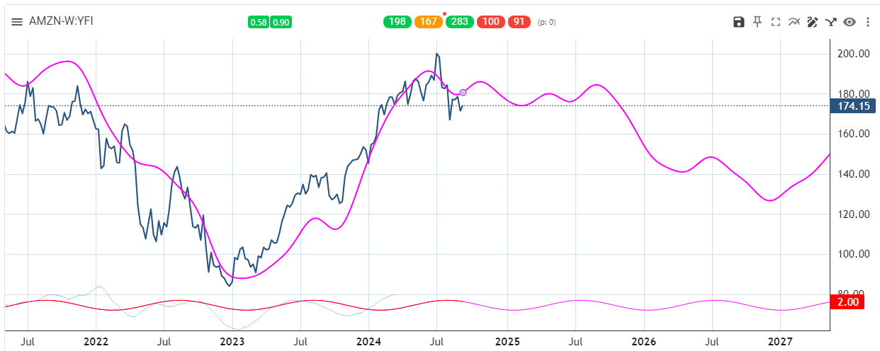 The weekly cycle composite shows a significant cycle low in 2026, just as many other stocks and market indexes.