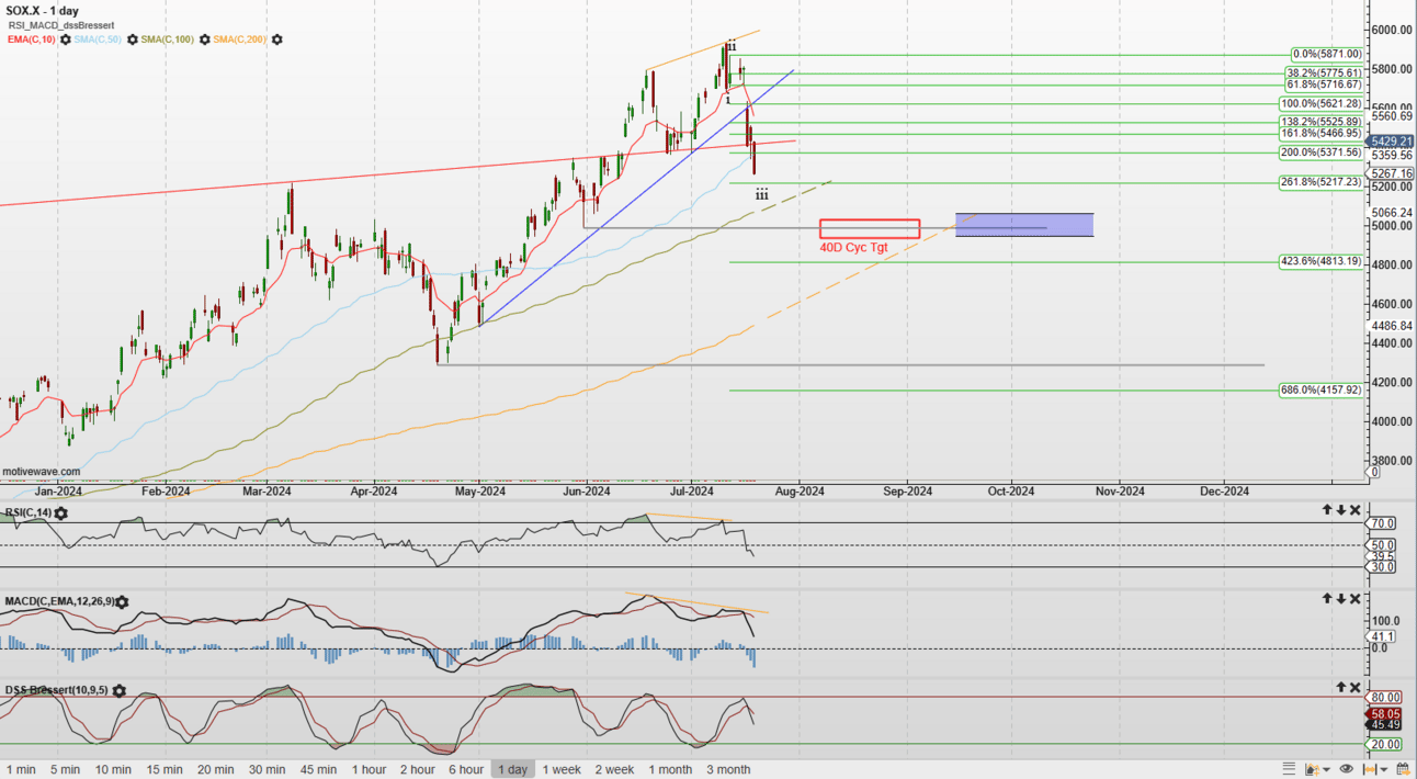 I believe I also pointed out the bearish engulfing pattern in the last update. SOX had pronounced bearish engulfing at March, June, and July highs. This has bearish implications.