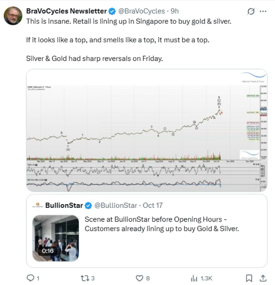 People on X posted videos about lines to buy gold and silver in Australia, Singapore, Vietnam, …