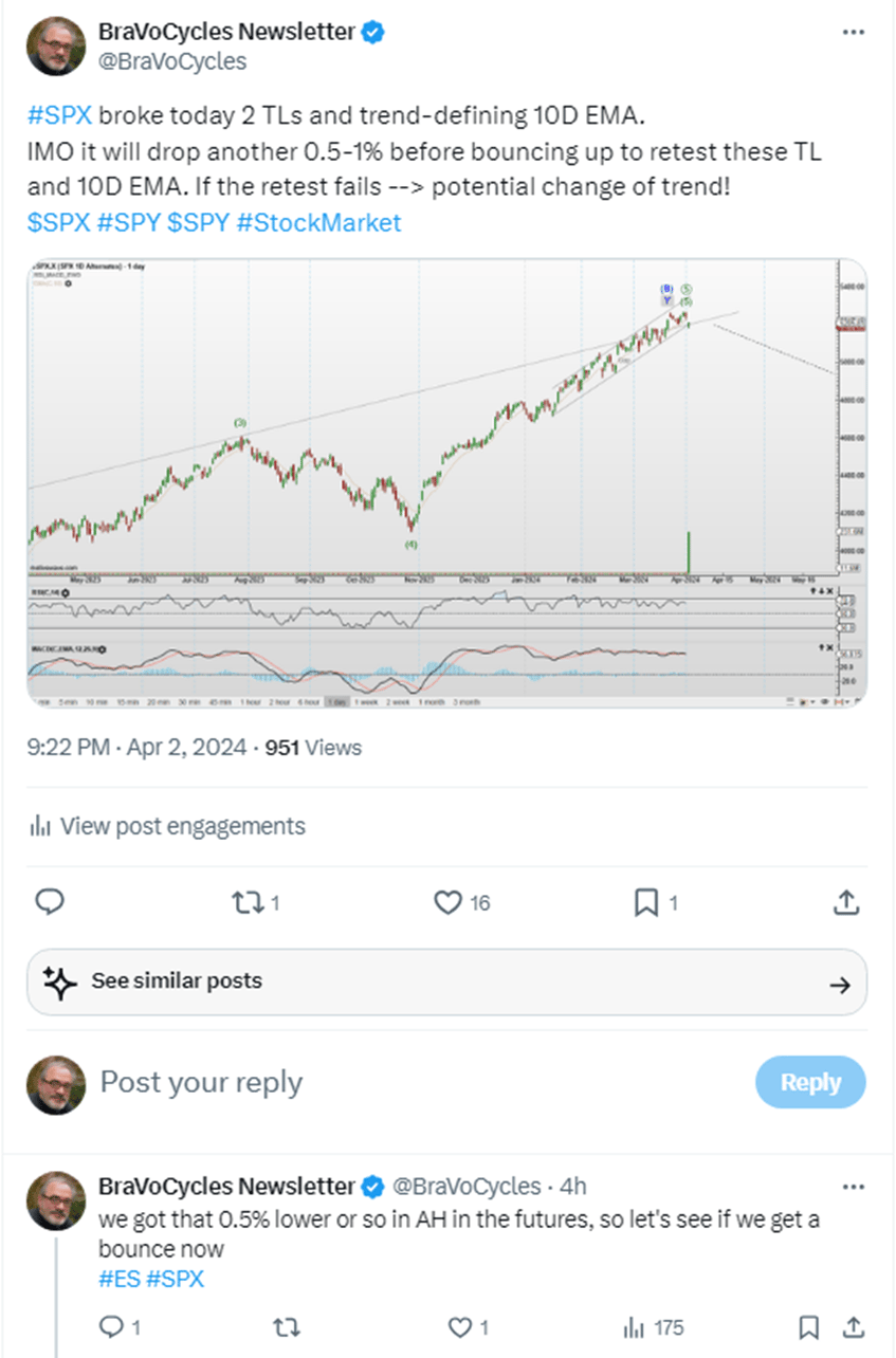 Further below is what I posted about SPX last night and this morning on X (former Twitter). Please consider my X posts an integral part of the newsletter.