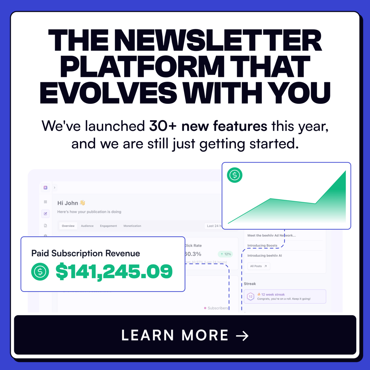 As an investing newsletter with over 20k subscribers, we’re excited to share an exclusive Black Friday offer from beehiiv. Get 20% off annual plans and start building your audience! Claim your discount, here.