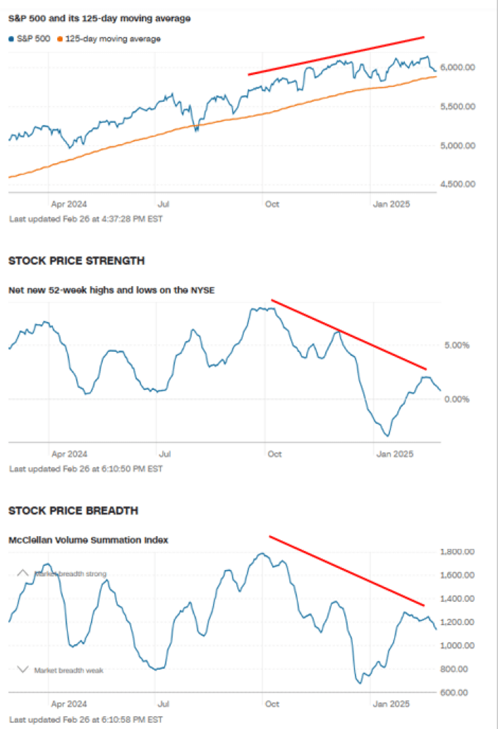 Notice significant multi-month divergence and market internals that I follow. This suggests a correction that will last longer than just several days.