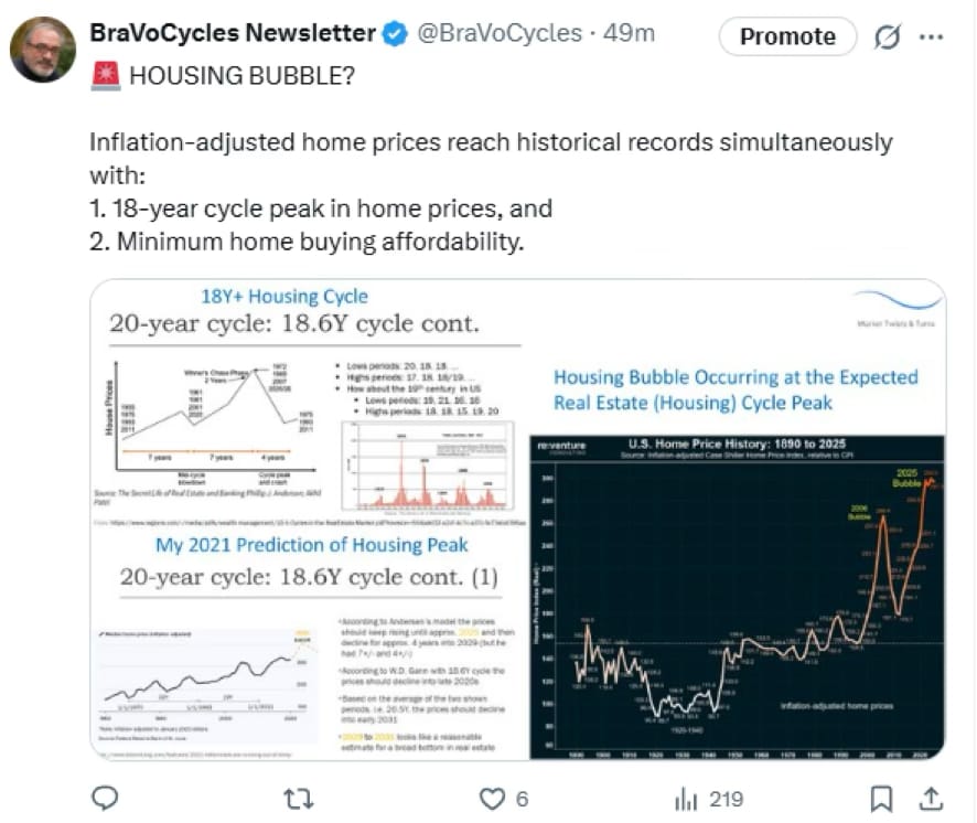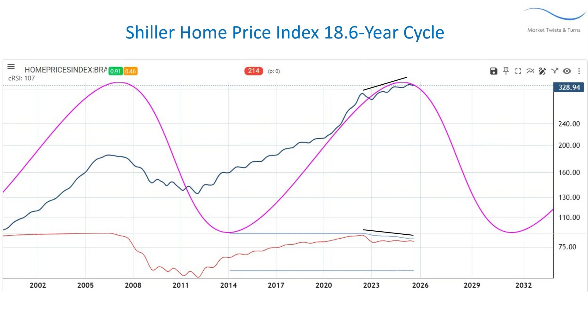 About an 18-year (18.6) cycle in home prices is rolling over.