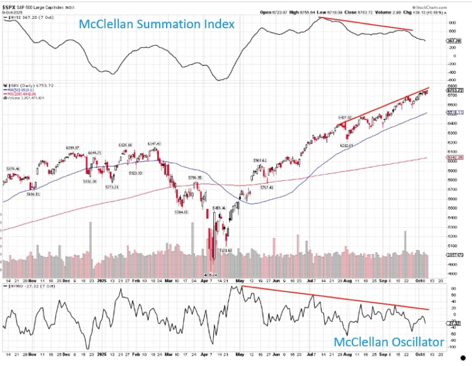 The McClellan Summation Index ($NYSI) has been pointing lower for weeks while the S&P 500 has been relentlessly pushing up.